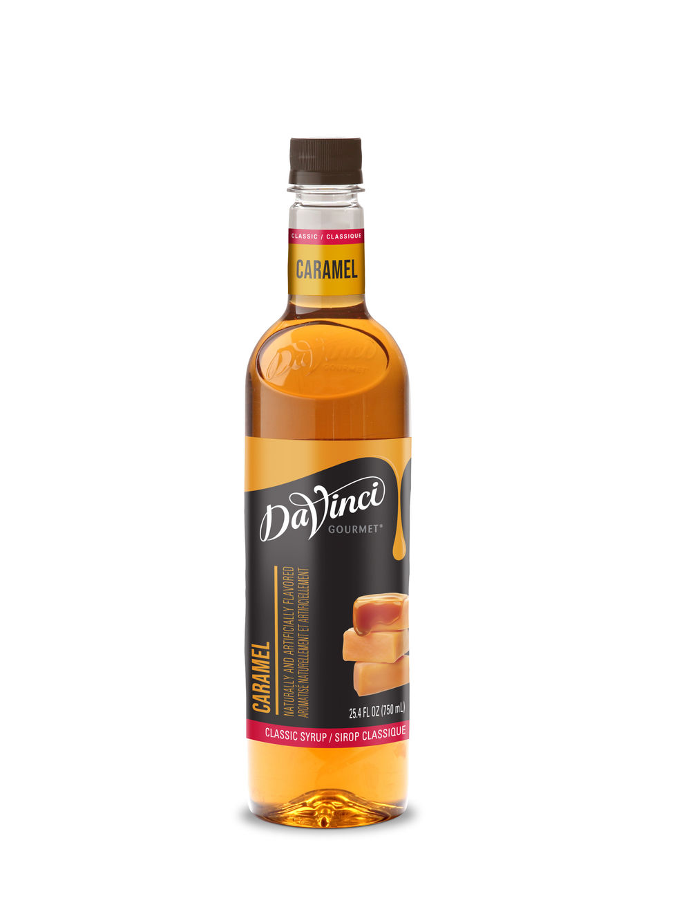 DaVinci Gourmet Classic Caramel Syrup is crafted in small batches and contains the taste of slightly burnt sugar for authentic flavor inspired by classic candy caramels. DaVinci Gourmet syrup is made with the finest ingredients like pure cane sugar and natural flavors to ensure incomparable flavor and quality with every sip. Create classic pairings with chocolate, vanilla or nuts when you add a drizzle of our caramel syrup to coffee, cocktails or desserts. DaVinci Gourmet’s lineup of classic and seasonal coffee syrups are made to easily add flavor to a variety of beverage and culinary applications.. DaVinci Gourmet Classic Caramel Syrup resists curdling in dairy products, perfectly holds its flavor in hot and cold beverages and is Kosher-Pareve certified.